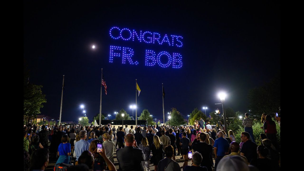 500 drones took to the skies to create a number of Notre Dame icons during the celebration of Rev. Robert A Dowd, C.S.C.’s inauguration.